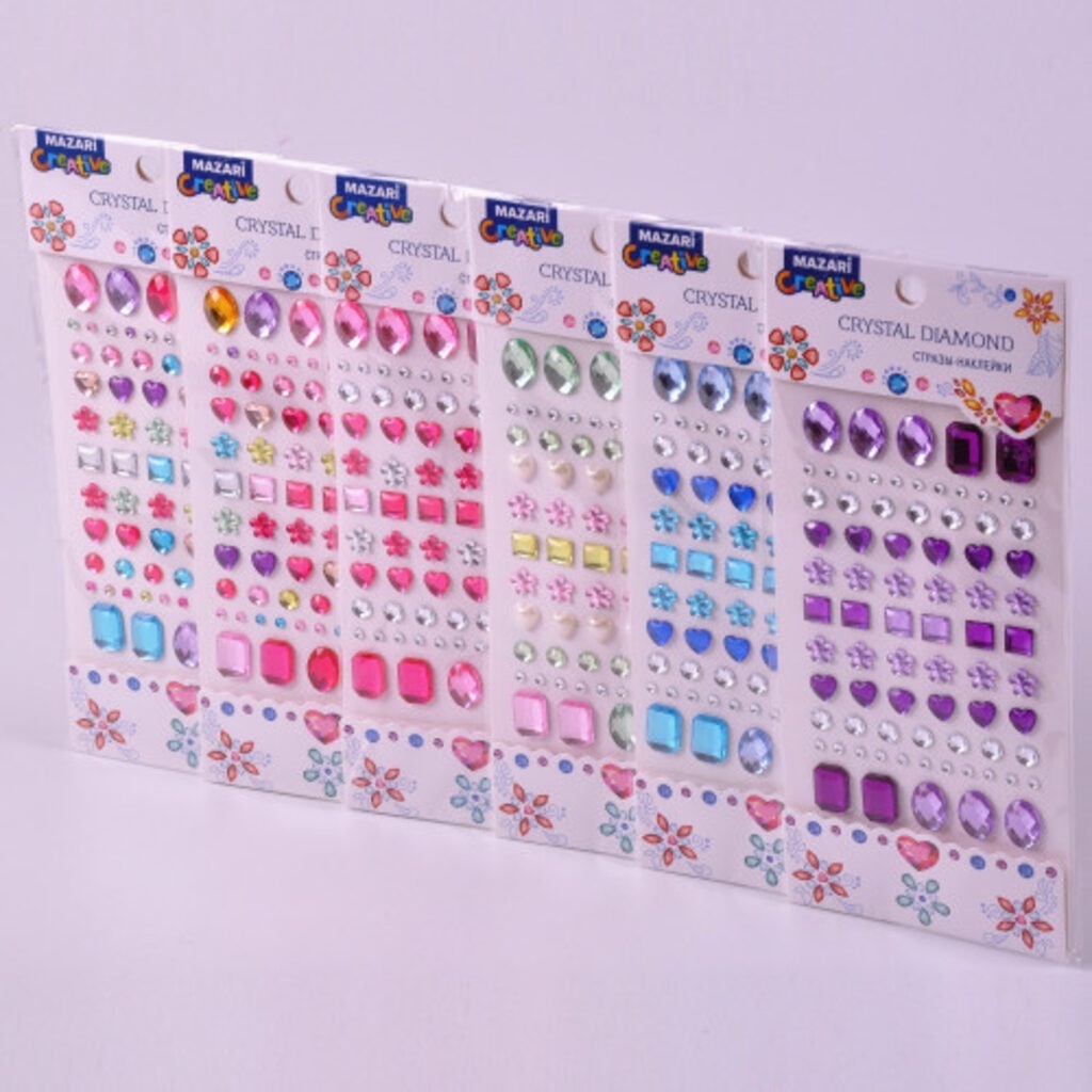 Наклейки акрил М-8649 стразы ассорти 8*19см Mazari