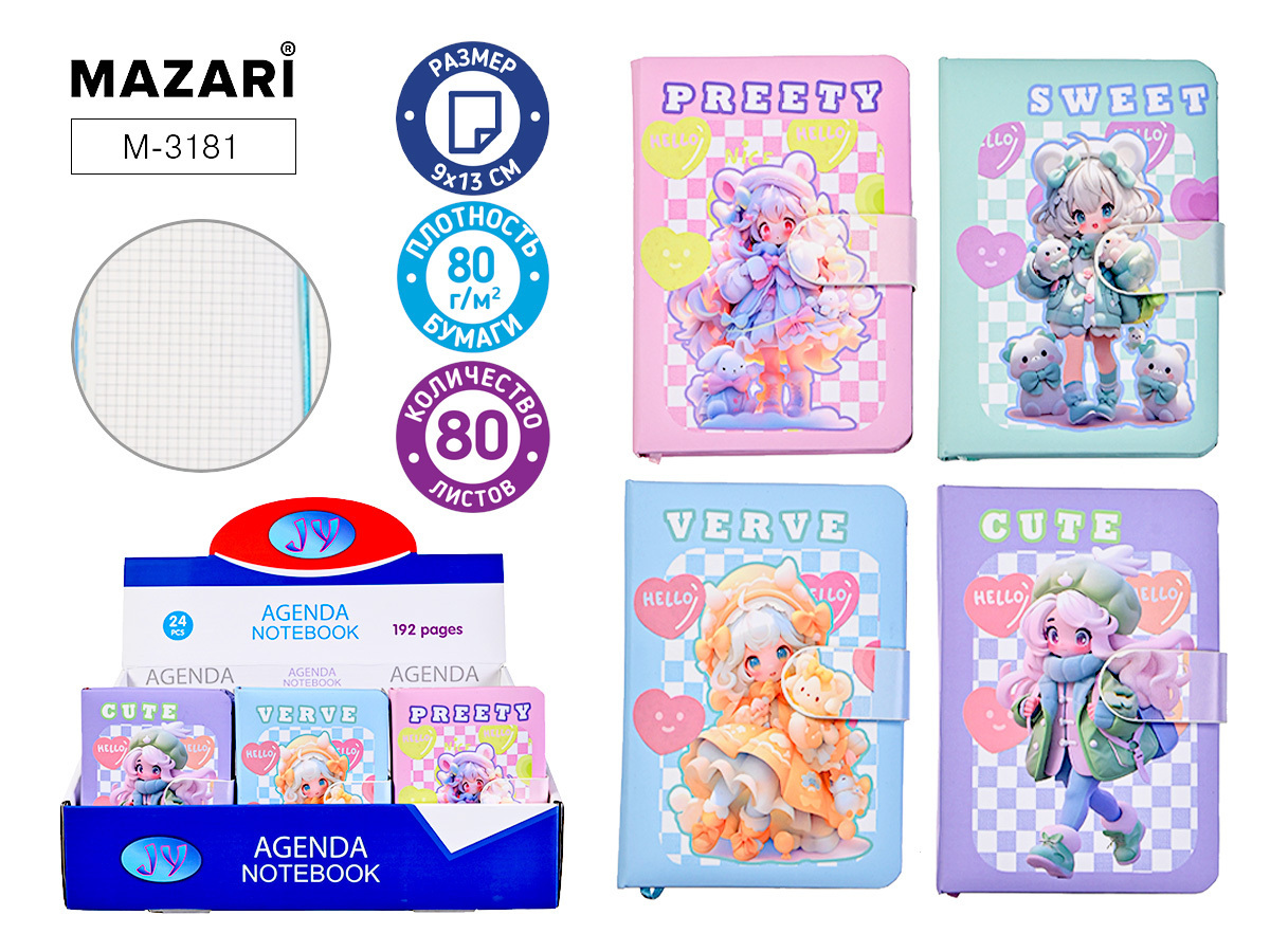 Блокнот "Девочки" 9*13см тв.переплет магнитн.застежка 96л клетка 80г/м2 М-3181
