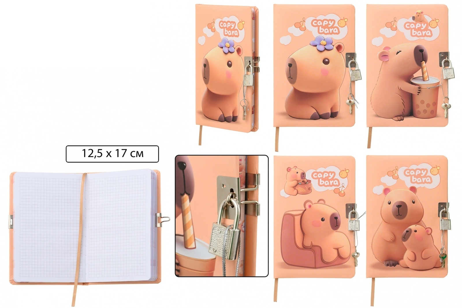 Блокнот "Капибара" 19*13см с замком тв.переплет 80л клетка МС-7465 Basir
