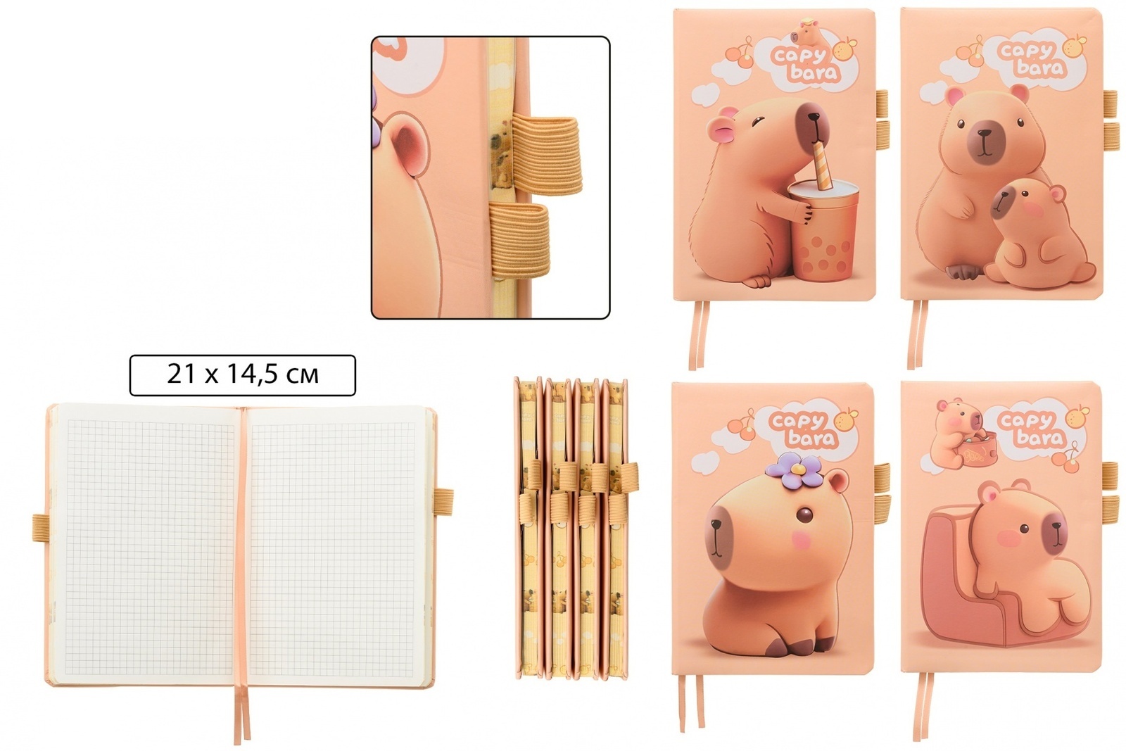 Записная книжка А5 80л "Капибара" 21*15см 2 резинки для ручек тв.переплет клетка МС-7595 Basir