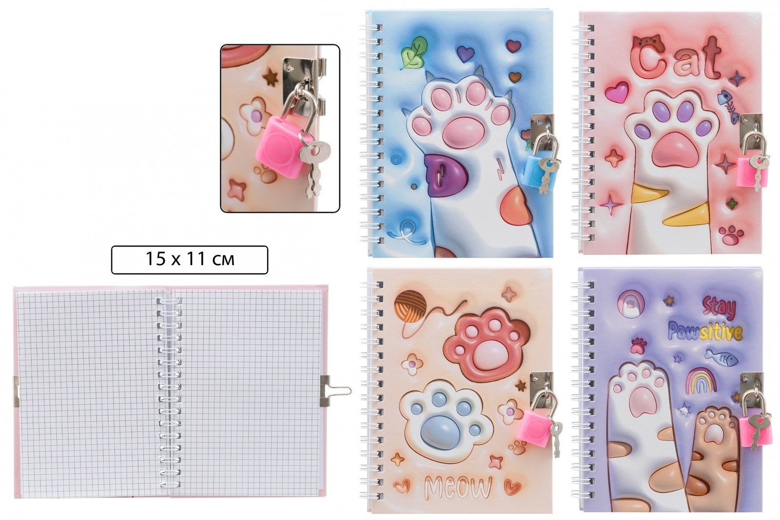 Блокнот "Лапки" 15*11см с замком на гребне тв.обл 48л клетка МС-7476 Басир