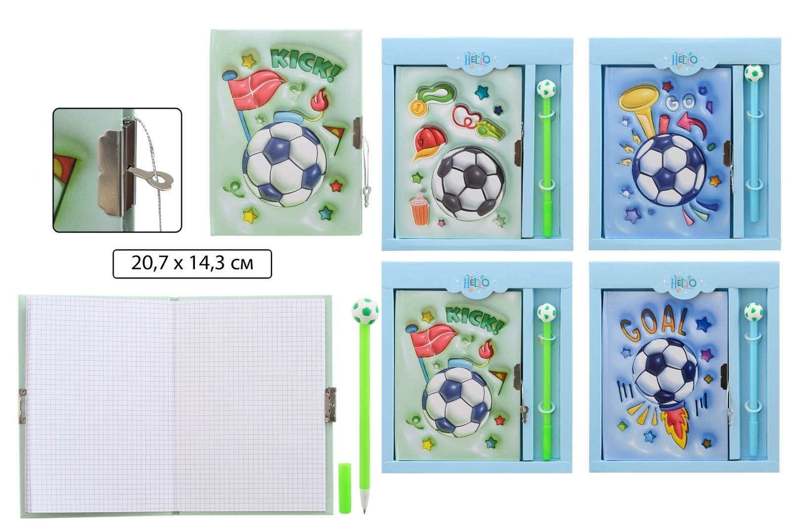 Блокнот "Футбольный мяч" 18*13см +ручка с замком тв.пер 48л клетка в коробке МС-7472 Басир