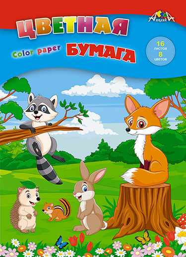 Цветная бумага А4 16л 8цв С0005-69 "Лесные друзья" Апплика