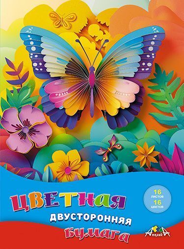 Цветная бумага А4 16л 16цв двухсторонняя С4443-20 "Яркая бабочка" Апплика