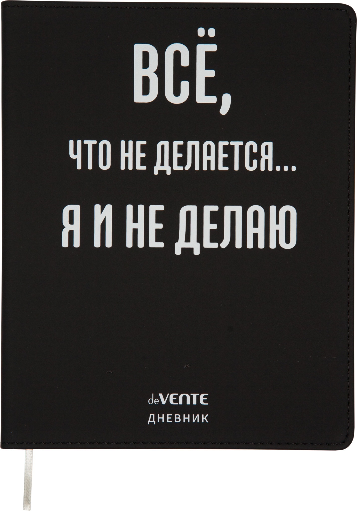 Дневник "deVENTE. Всё, что не делается..." универсальный блок, 48 листов, белая бумага 80 г/м², печать в 1 краску, гибкая обложка из искусственной кожи, шелкография, отстрочка, 1 ляссе.