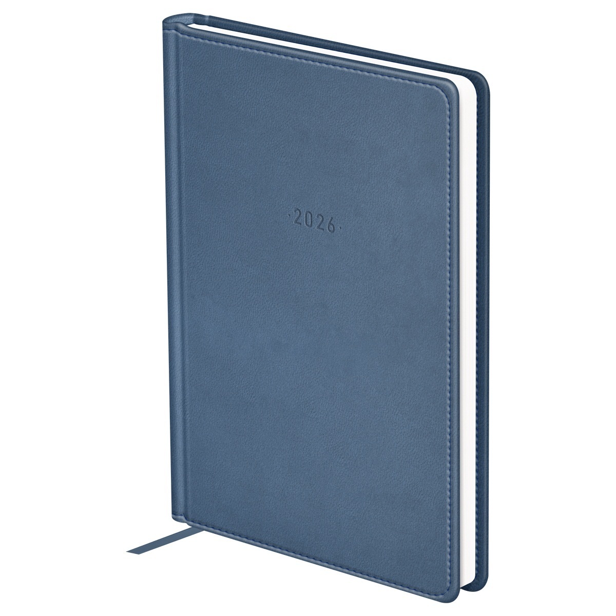 Датированный ежедневник на 2026 год формата А5 серии серии Winner в твёрдой обложке серо-голубого цвета, выполненной из высококачественной экокожи с гладкой матовой поверхностью и поролоновой прослойкой. Внутренний блок состоит из 176 листов белой офсетной бумаги плотностью 70 г/м2 с печатью в 2 краски. Датированный ежедневник представлен в размере 145*205 мм.