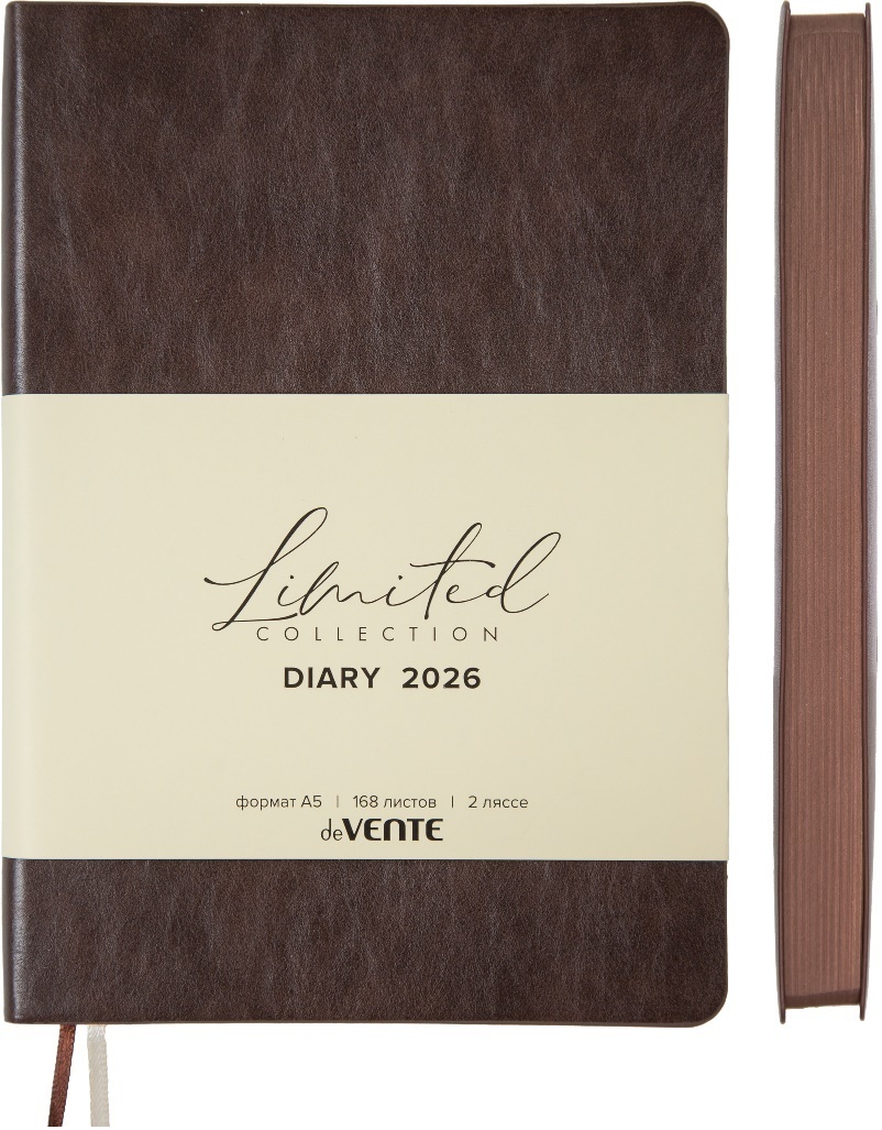 Ежедневник 2026 А5 deVente "Orto" 168л 145*205мм, темно-коричневый, мяг.обл., иск.кожа, перфорация, мет.уголки, 2 ляссе. коричневый срез.