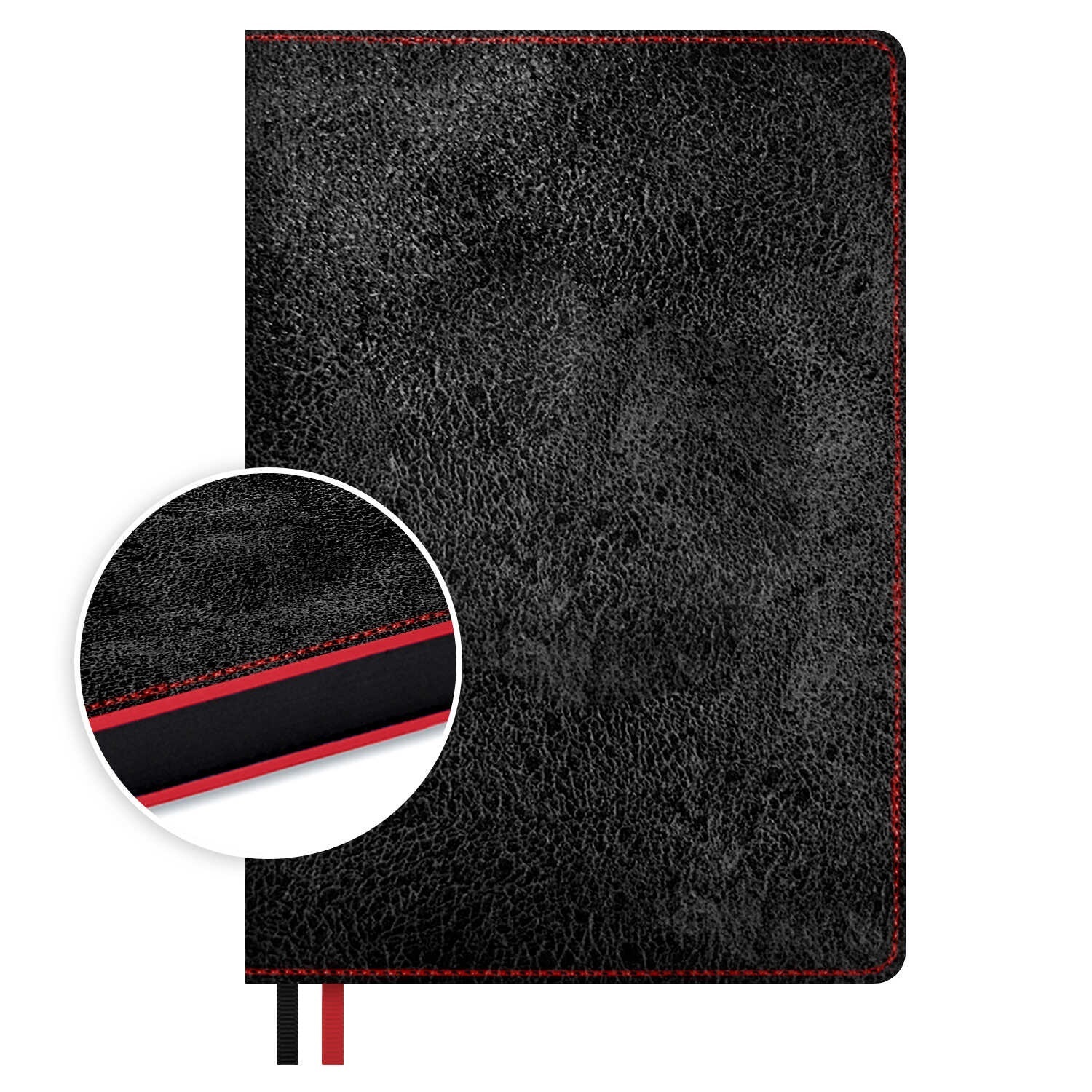 Ежедневник полудатированный ESCALADA, А5, 192 л., арт. 70630/ 15 ТИВОЛИ ДЕЛАВЭ ЧЁРНЫЙ/КРАСНЫЙ (кожзам: 146x211 мм, твёрдый переплёт, запаянный край, материал обложки: искусственная кожа "Тиволи делавэ"; способ крепления блока: ниткошвейный; вн. блок: 192 л., кремовый офсет 70 г/м², печать в две краски (линия), справочный материал: есть; перфорация углов блока: нет; отделка среза: окрашивание пантоном; закладка/-и: два ляссе, каптал: есть; форзац: печать пантоном, персонализация возможна: да; индивидуальная упаковка.