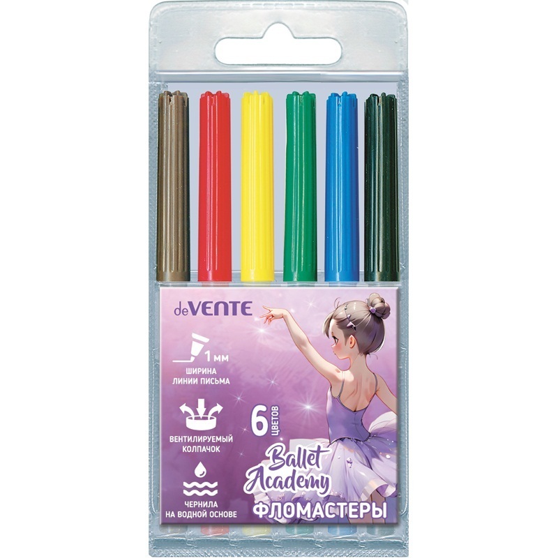 Фломастеры 6цв "deVente.Ballet Academy" вентелир. колпачки 5080524