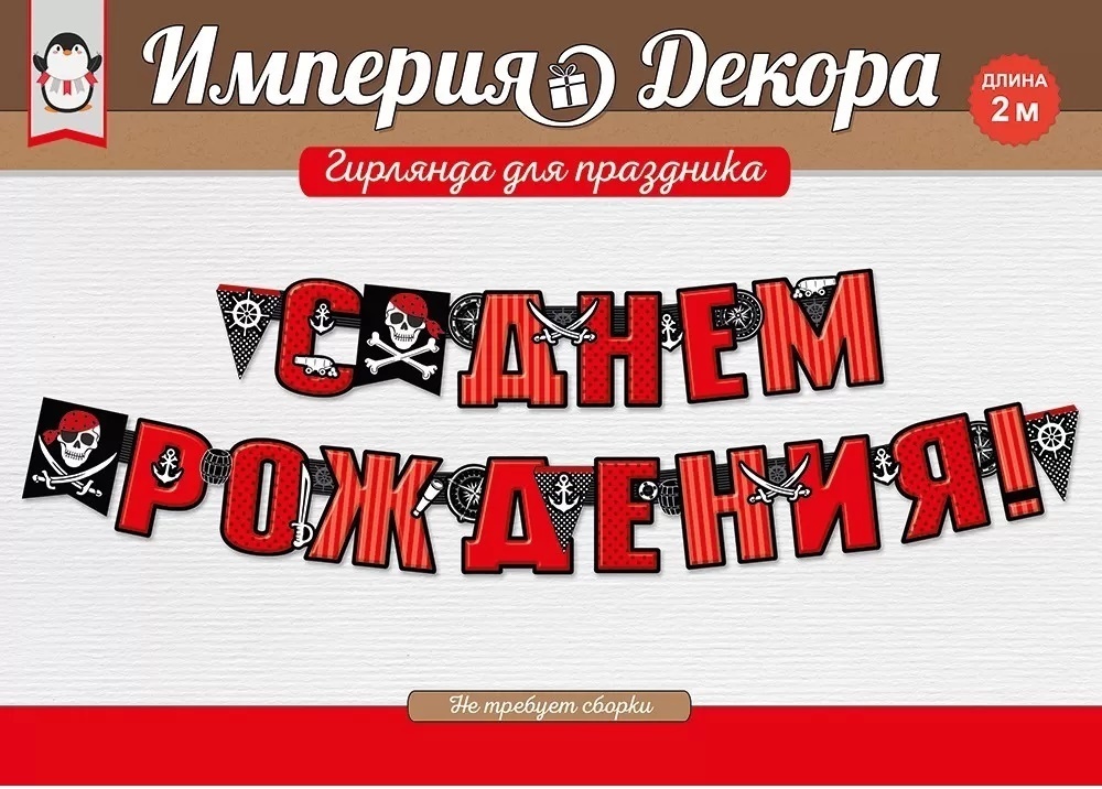 Гирлянда-растяжка "С днем рождения.Пираты" 2м код 946 54.070.00