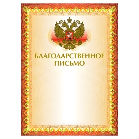 Благодарственное письмо Российская симв. 230 г/м2 код 123060 Brauberg