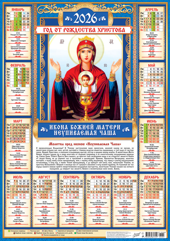Календарь листовой А2 2026 г "Православные.БМ Неупиваемая чаша" аЛИСа