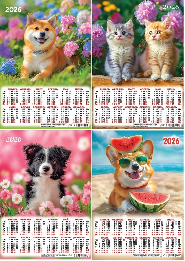 Календарь листовой А3 2026г "Животные" аЛИСа