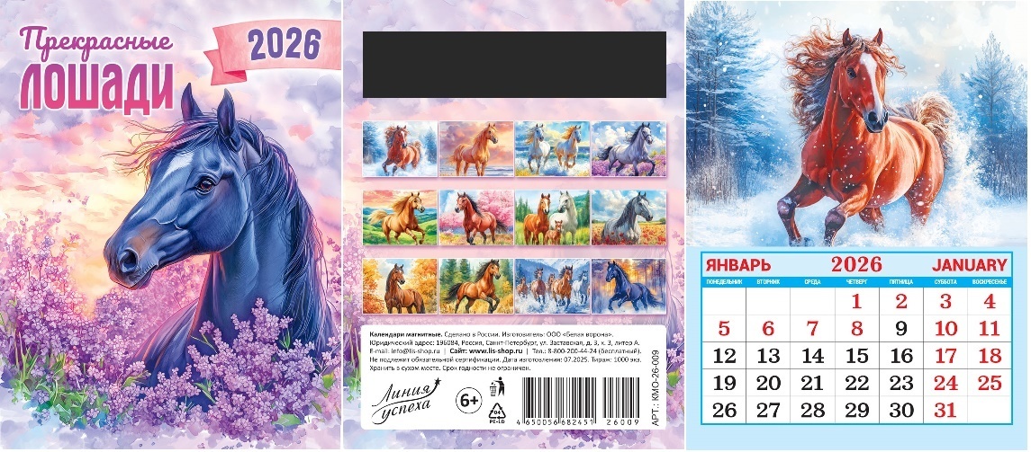 Календарь магнитный 2026 отрывной "Символ года.Прекрасные лошади" 13*19см 14л КМО-26-009 аЛИСа