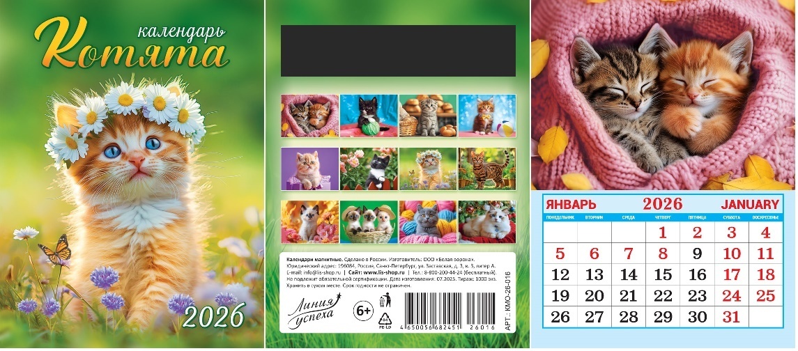Календарь магнитный 2026 отрывной "Котята" 13*19см 14л КМО-26-016 аЛИСа