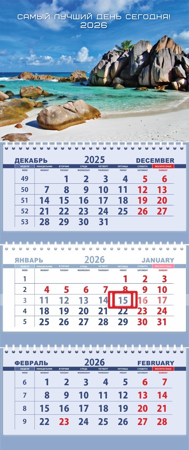 Календарь трехблочный "Attomex.Самый лучший день сегодня!" 295*700 2133536 deVente