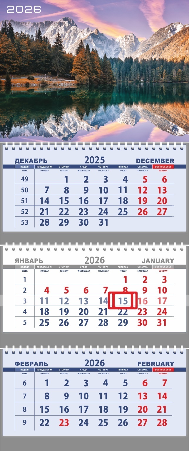 Календарь трехблочный "Attomex.Закат в горах" 295*700 2133558 deVente