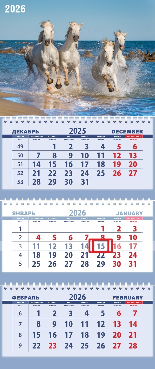 Календарь трехблочный "Attomex.Символ года.Табун белых лошадей" 295*700 2133520 deVente