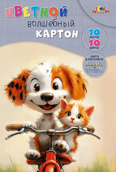 Картон цветной А4 10л 10цв волшебный С0010-44 "Милые друзья" Апплика