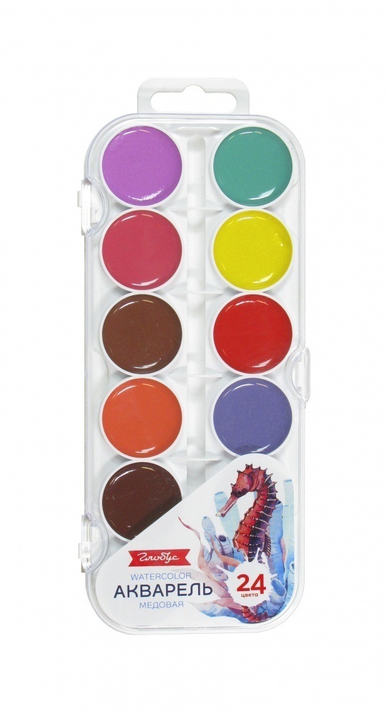 Краски акв 24 цв "Глобус" пластик КАМ-24