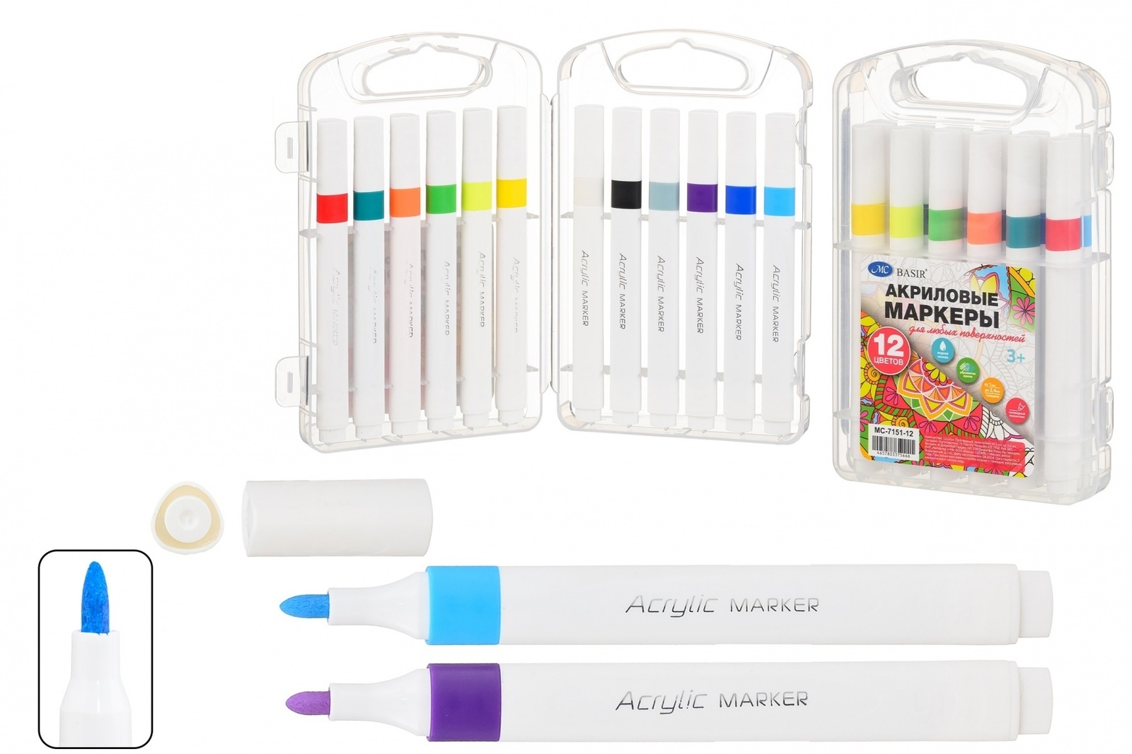 Набор маркеров акриловых 12шт "Basir" 2/4мм МС-7151-12