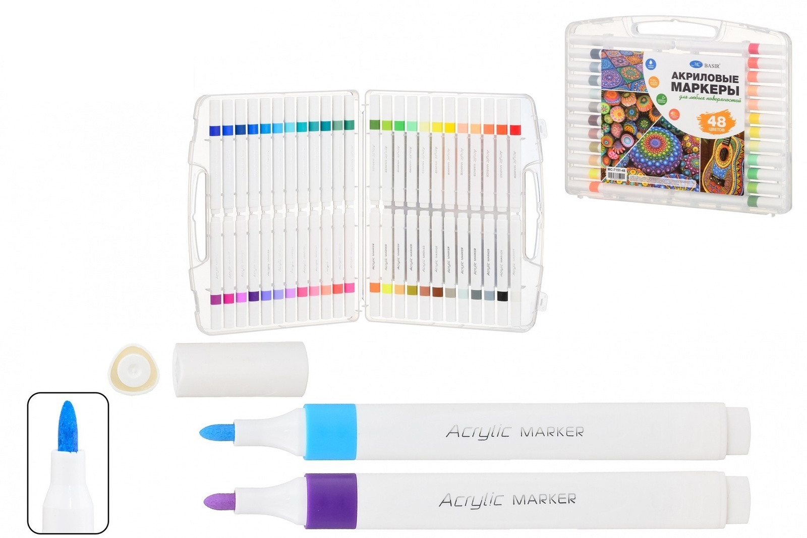 Набор маркеров акриловых 48шт "Basir" 2/4мм МС-7151-48