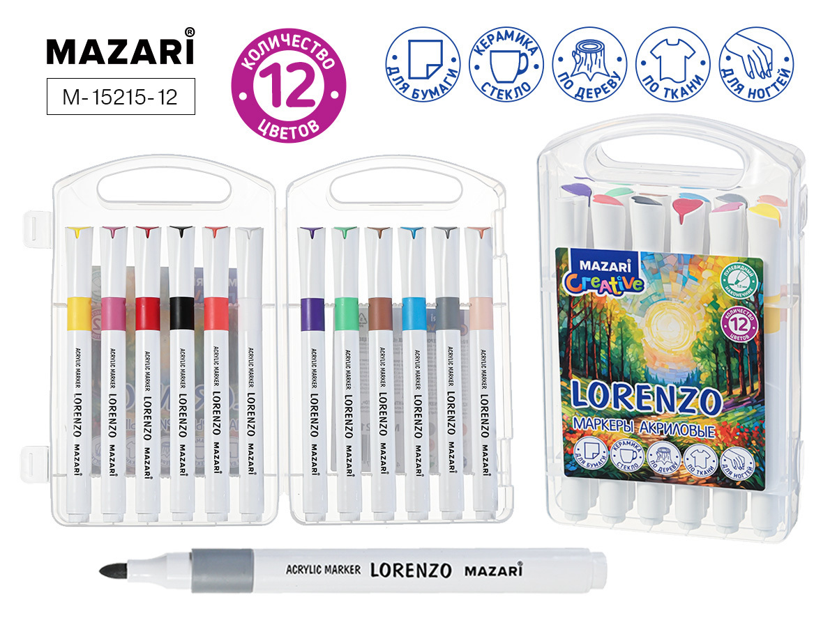 Набор маркеров акриловых 12шт "Mazari.LORENZO" 2мм M-15215-12