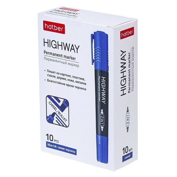 Маркер двухсторонний "Hatber.Highway" синий 2-5мм PM_069851