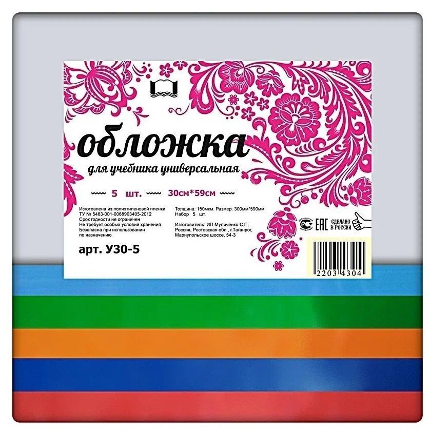 Набор обложек 300*590 5шт д/учебника универс 150мкм цветной клапан ПЭ ОБА4 У30-5