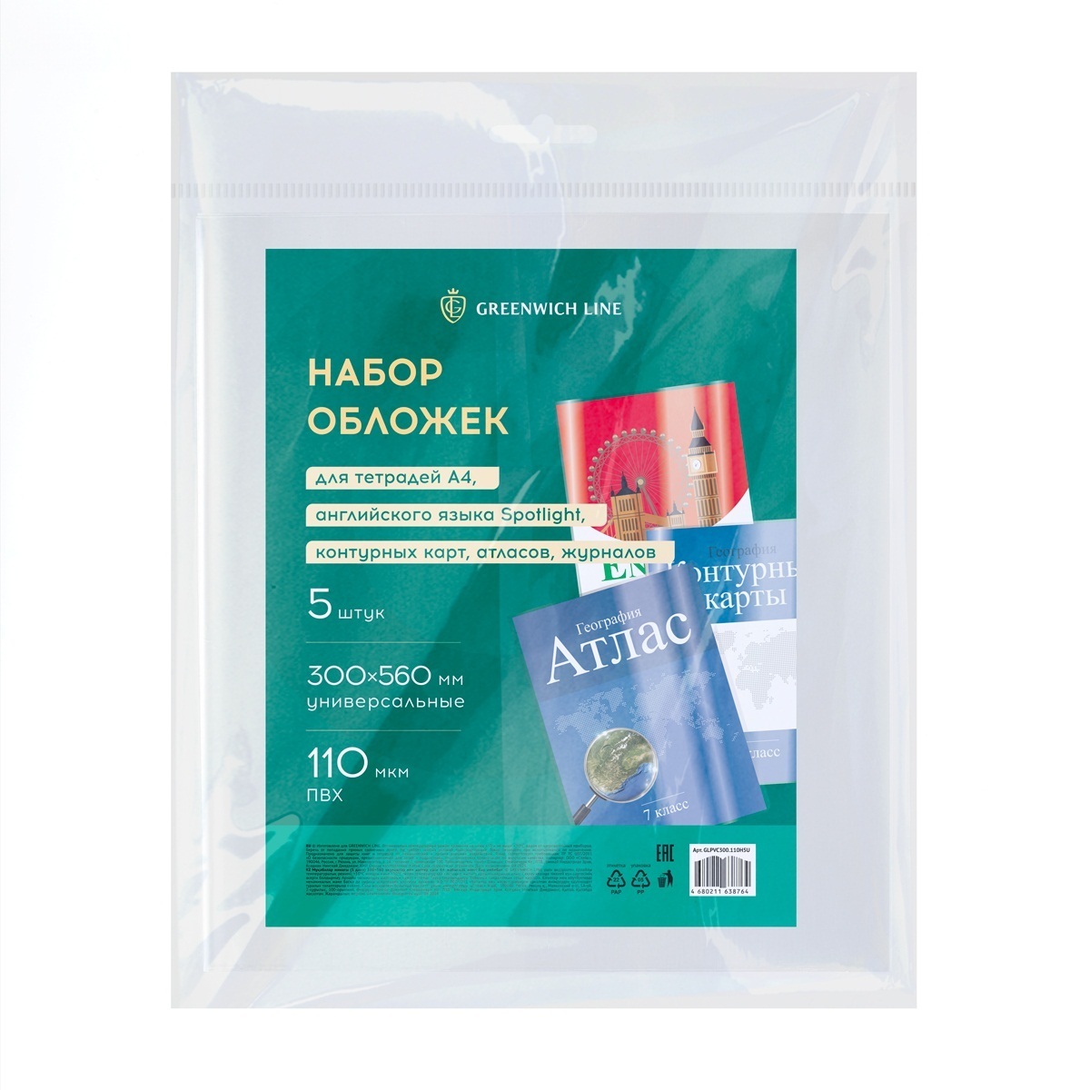 Набор обложек 300*560 5шт д/учебника для учеб универс 110мкм лип.край GLPVC300.110Н5U GreenwichLine