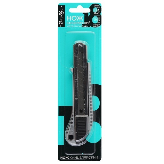 Нож канцелярский Глобус 18 мм. Выполнен из прочной стали, которая позволяет использовать его для резки бумаги, картона, пленки, пластика, обоев, линолеума, распаковки и вскрытия коробок. Нож обладает высокой прочностью и не сломается даже при интенсивных работах.