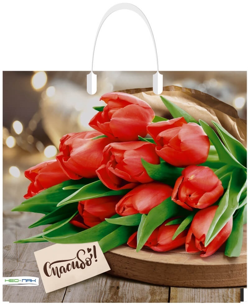 Пакет 37*35 "Спасибо.Тюльпаны" 90мкм с пластиковой ручкой 1892