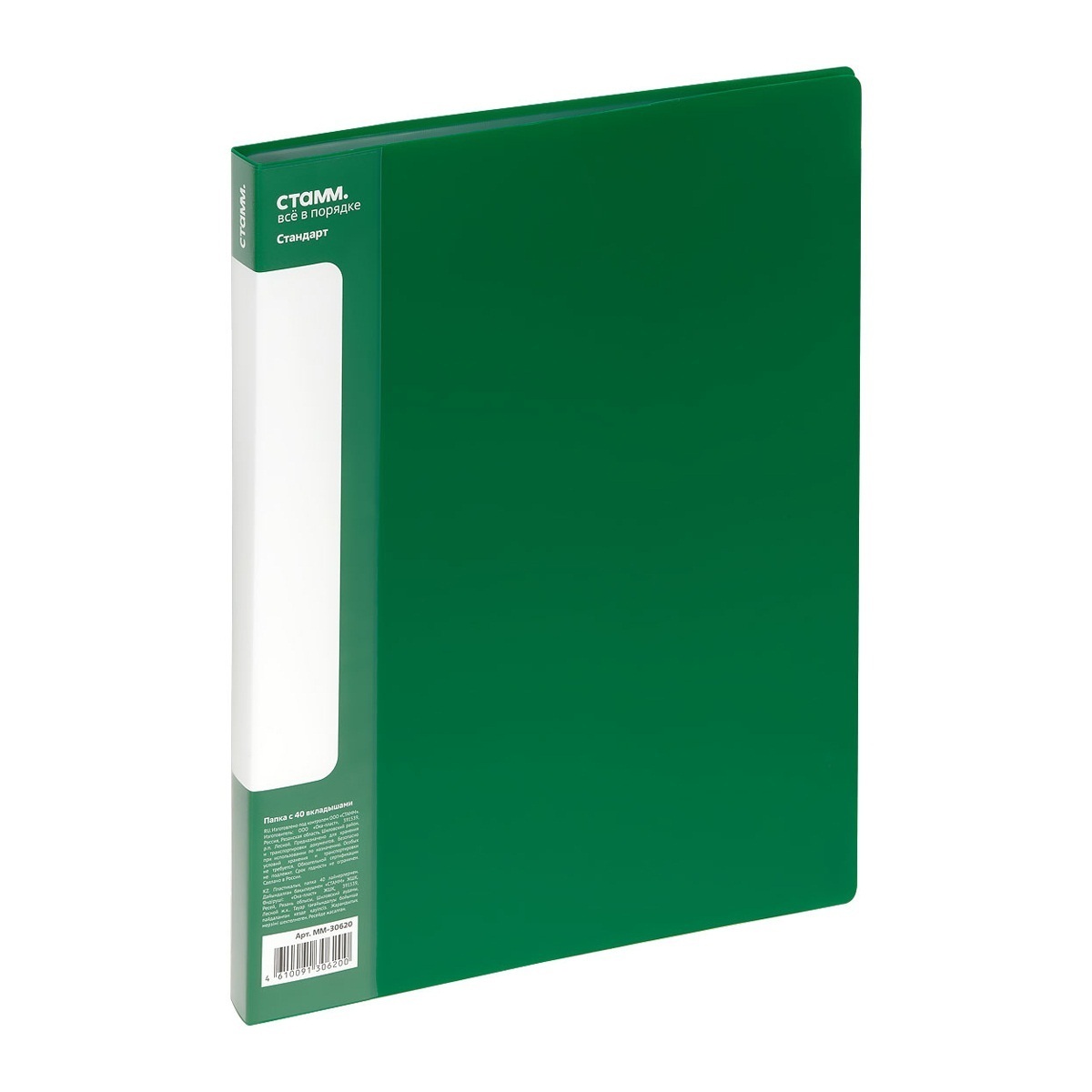 Папка 40 файлов "СТАММ.Стандарт" 21мм 600мкм ММ-30620 зеленая