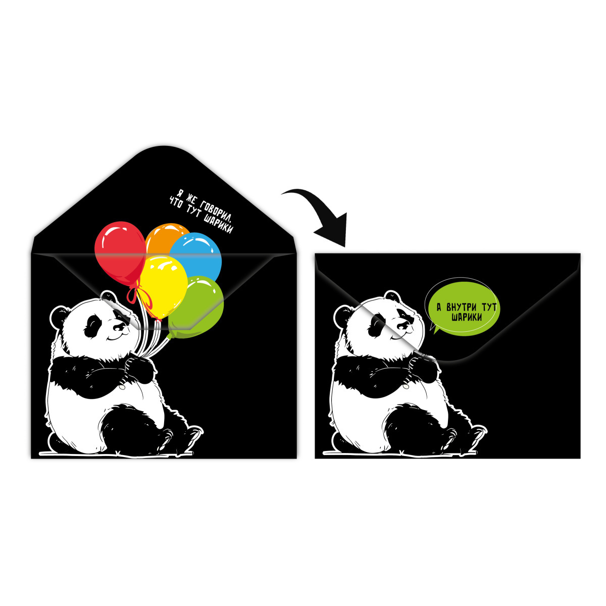 Папка-конверт на кнопке "Панда" формата А4  для хранения и транспортировки документов. Выполнена из прочного пластика толщиной 0,18 мм и украшена очаровательным рисунком панды с воздушными шариками. Особенностью этой папки является печать дизайна с внутренней стороны, что придает ей дополнительную привлекательность. Размер 240*310 мм идеально подходит для листов формата А4.