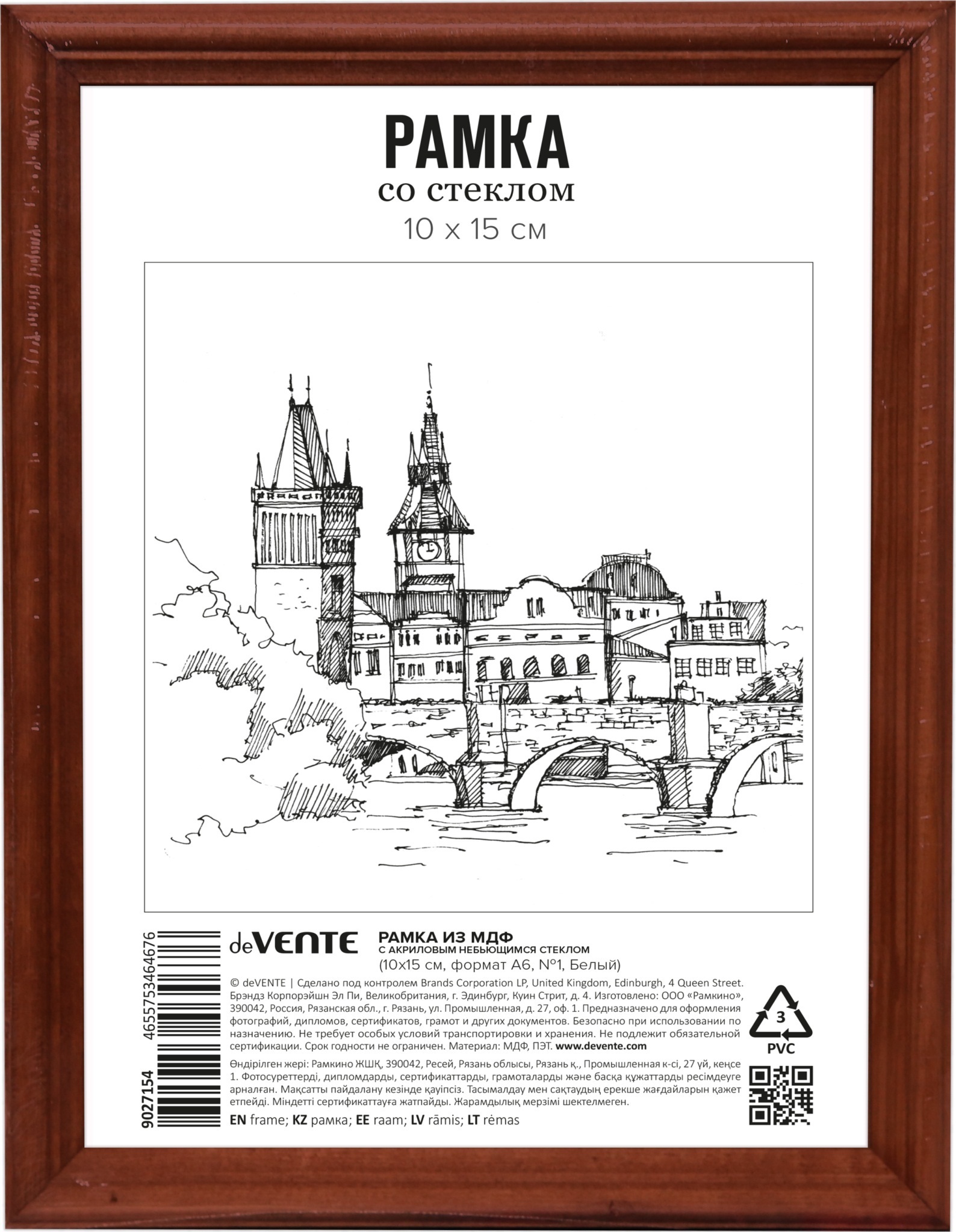 Рамка для фото 10*15 МДФ "deVente" итальянский орех акрил 9027155