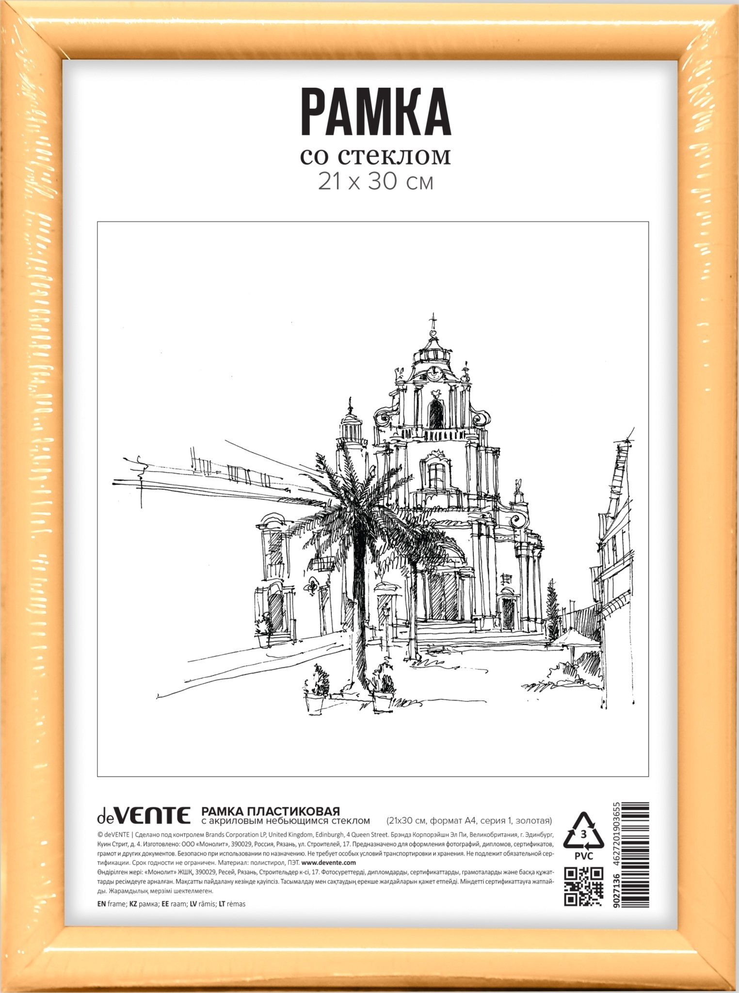 Рамка для фото 21*30 пластик "deVente" золото акрил 9027136