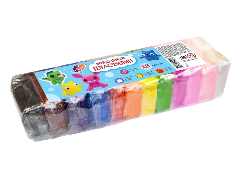 Пластилин легкий 12 цв "Луч" прыгающий,не тонущий 180гр 34С 2228-08