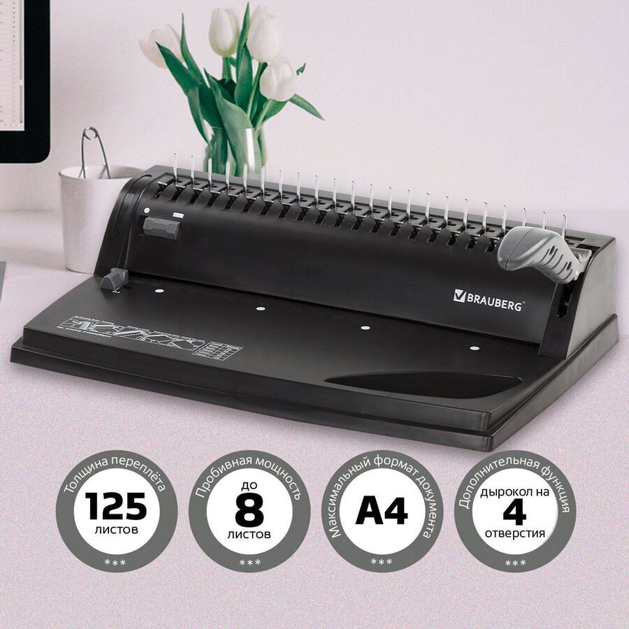 Переплетная машина для пластиковой пружины BRAUBERG "B8" (брошюровщик) идеально подходит для небольшого офиса и дома, где периодически возникает потребность в переплете документов.