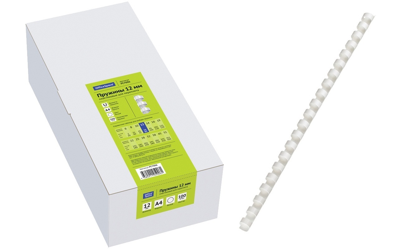 Пружина для брошюратора пластик 12мм "OfficeSpace" (100шт) белые PC7006