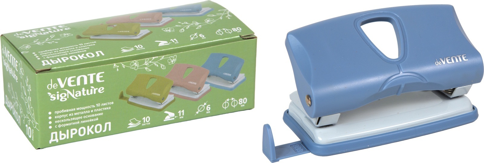 Дырокол 10л "deVente.sigNature" сумеречный/синий пластик с линейкой 4020509