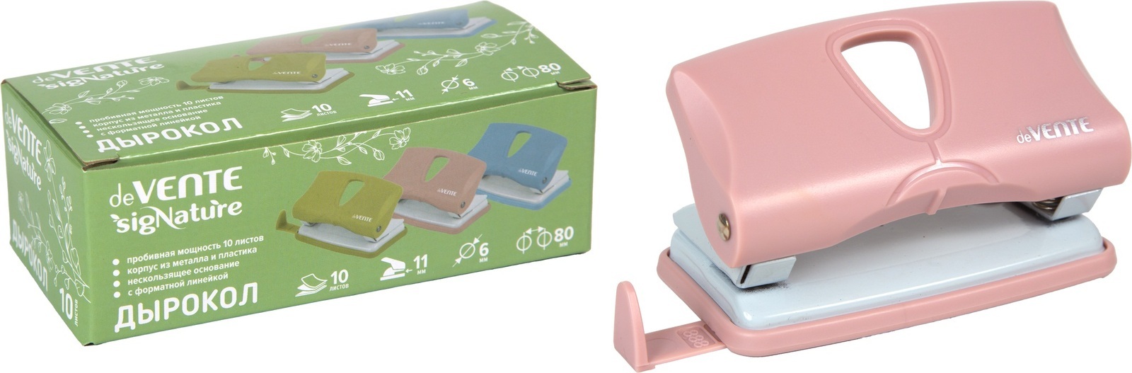 Дырокол 10л "deVente.sigNature" пудрово/розовый пластик с линейкой 4020510