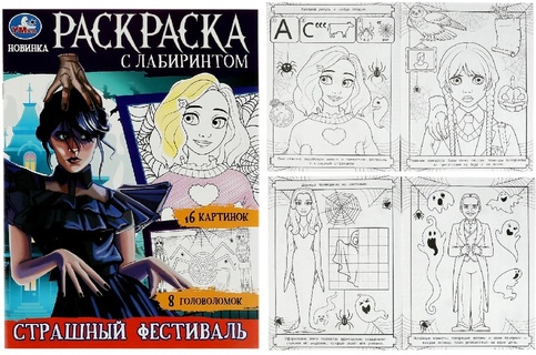 Раскраска "I love Wednesday.Страшный фестиваль.Раскраска-лабиринт" А4 16стр 354608(6239)СУПЕРЦЕНА