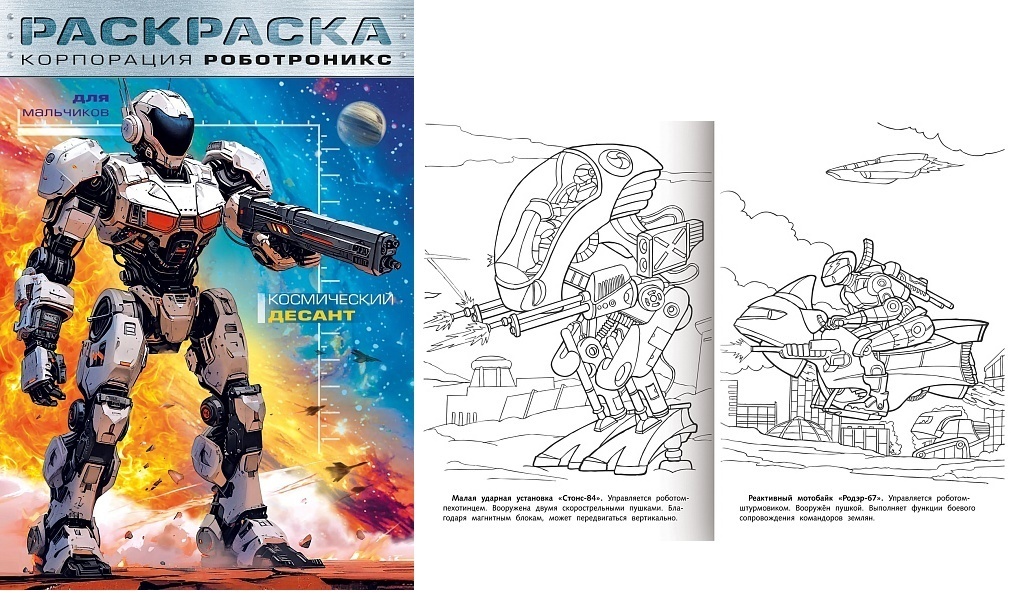 Раскраска "Для мальчиков.Корпорация Роботроникс.Космический десант" А4 16стр 8Р4_35246 093313 Хатбер