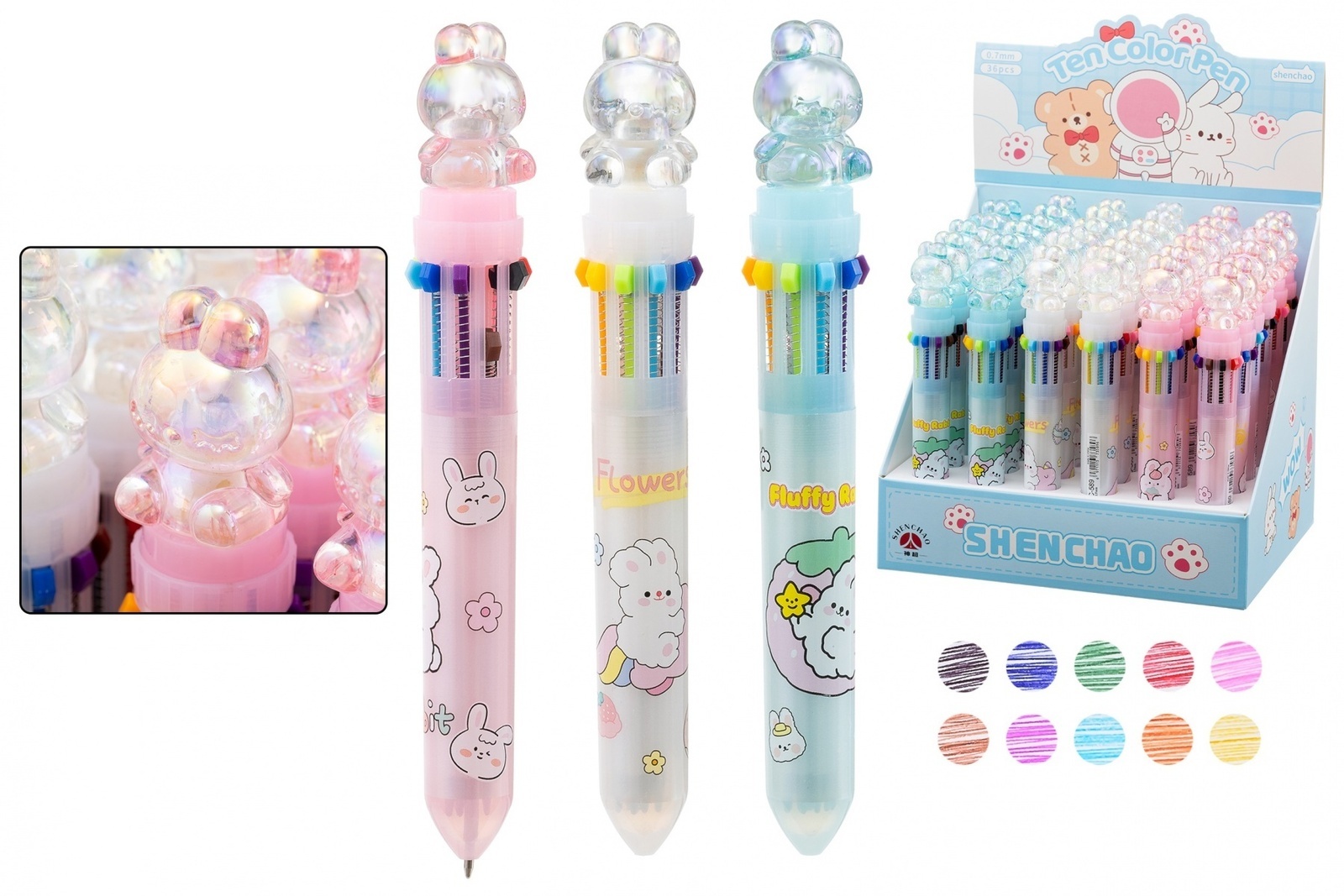 Ручка шариковая "Basir.Зайчик" автомат 0,7мм 10-цветная SC-589