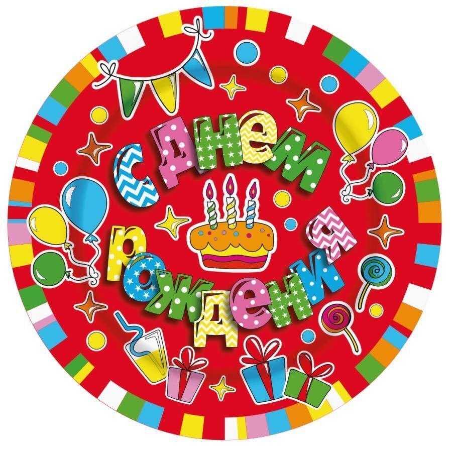 Тарелки "С Днем рождения Торт" бумажные d18см (6шт в уп) Ч03134