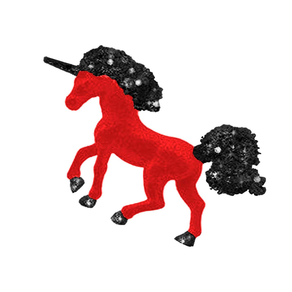 Елочная игрушка "Единорог" красный 16см пластик флок 253242