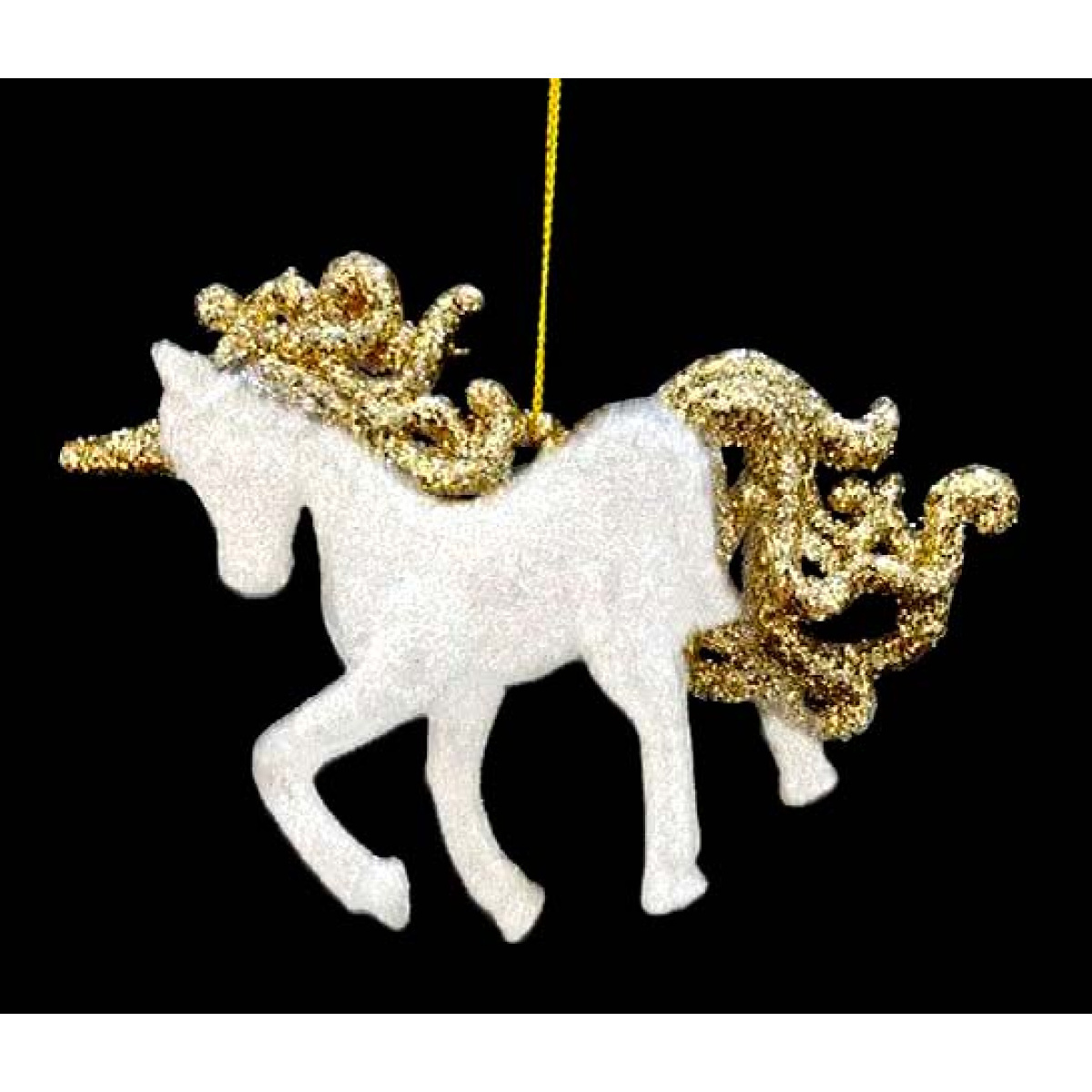 Елочная игрушка "Единорог с блестками" белая с золотом 10см акрил 253366