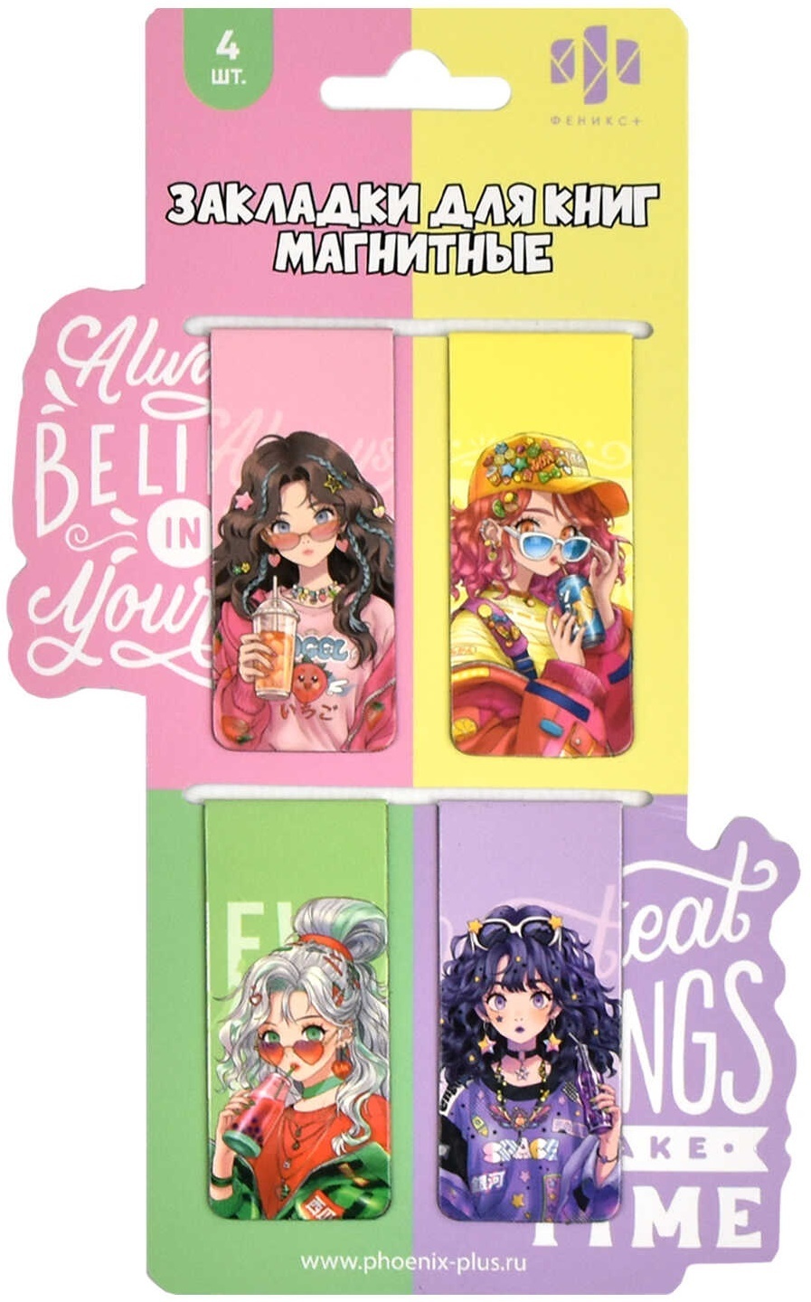 Закладки- магниты "Девушки" 2,5*5,8см ассорти (цена за набор 4шт) 67747 Феникс+