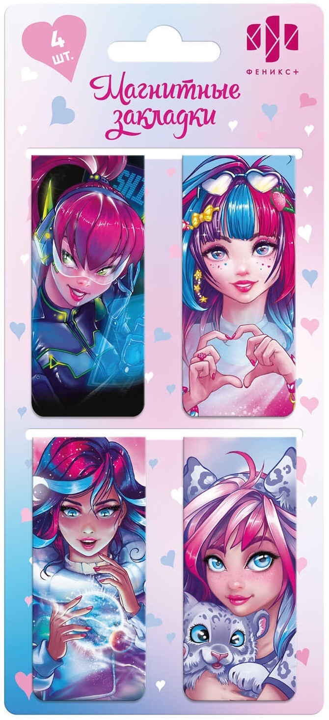 Закладки- магниты "Романтичные девушки" 2,5*5,8см ассорти (цена за набор 4шт) 65055 Феникс+