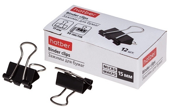 Зажим канц 15мм "Hatber" черные BC_059111